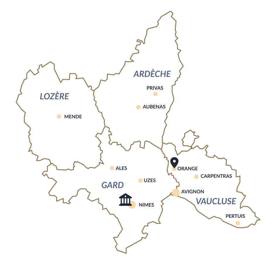 Notre étude exerce sa mission dans le ressort de la Cour d’appel de Nîmes, couvrant tout le département du Vaucluse ainsi que les départements limitrophes. Cette compétence territoriale large nous permet d’intervenir rapidement et efficacement sur un territoire dynamique, au service des droits et de la justice.